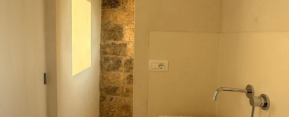 The accommodation is a traditional lamia, a characteristic Apulian stone dwelling, recently renovated and designed to welcome guests into a comfortable and elegant open-plan space. It features a double bedroom area, a fully equipped kitchen, and a bathroom with shower.